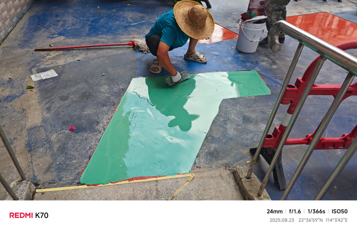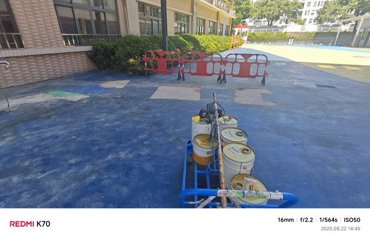 为了了不影响学校的正常教学秩序,施工团队特意利用暑期学生放假期间。从基础地面的清理、修补,到硅PU弹性层的多层铺设,每一道工序都严格对标专业标准。